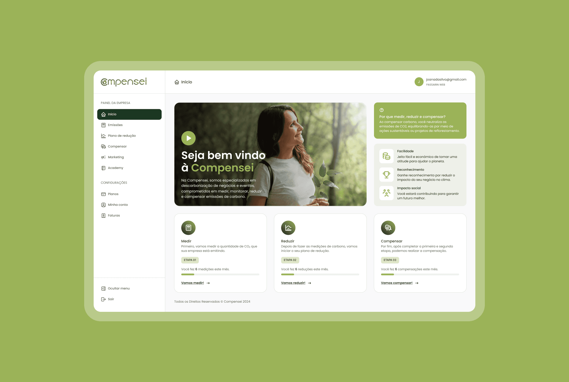 Compensei is a platform that enables companies to measure, manage, reduce, and offset carbon emissions as part of their sustainability and ESG strategies.